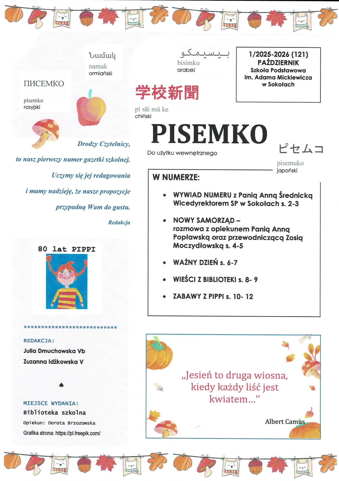 W czwartek 30.10.2025r. nasza szkoła kolejny raz wzięła czynny udział w akcji # „Szkoła pamięta” pod patronatem Ministerstwa Edukacji i Nauki. Akcja ta odbywa się w okresie, w którym wspominamy naszych bliskich, jak i tych, którzy zapisali się w historii - tej ogólnonarodowej i lokalnej. Uczniowie klas 0 wraz z opiekunami odwiedzili lokalne miejsca pamięci - grób nieznanego żołnierza na cmentarzu parafialnym w Sokołach, pomnik zamordowanego Ks. Jerzego Popiełuszki, który znajduje się przy Bazylice. Zapaliliśmy również znicz przy dębie katyńskim który upamiętnia ppor. Kazimierza Dworakowskiego, urodzonego w naszej gminie i uczęszczającego do szkoły w Sokołach, który był jedną z ofiar zbrodni katyńskiej.